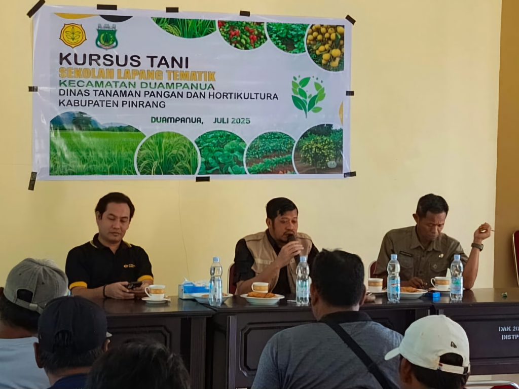 Pinrang – Kepala Dinas Tanaman Pangan dan Hortikultura (Distanhorti) Kabupaten Pinrang, A. Sinapati Rudy, SE, secara resmi membuka kegiatan Kursus Tani Sekolah Lapang Tematik yang dilaksanakan di Balai Penyuluh Pertanian (BPP) Kecamatan Duampanua, Sabtu (12/7/2025).