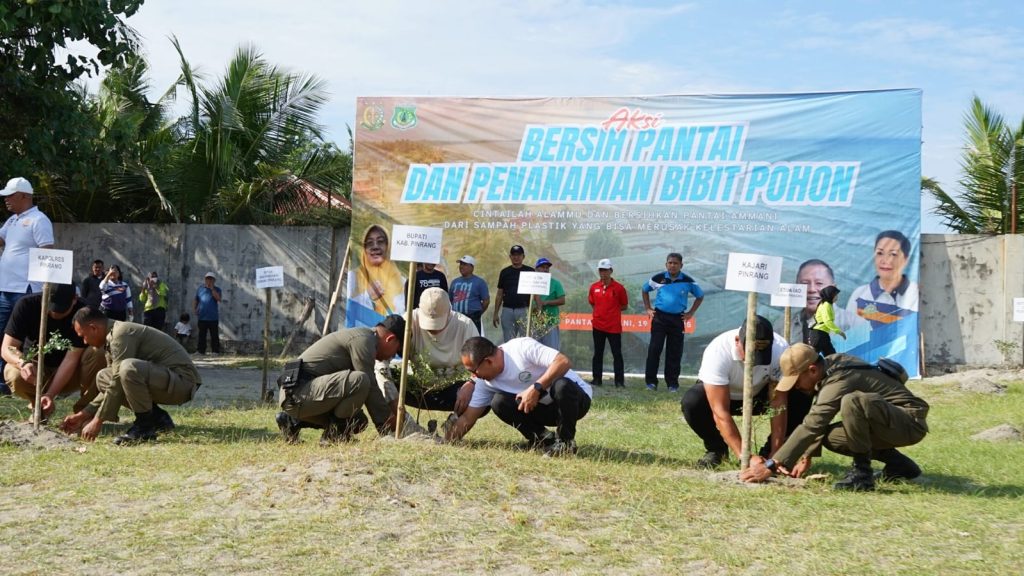 Pinrang– Dalam rangka menyambut Hari Bhakti Adhyaksa ke-65 tingkat Kabupaten Pinrang, Bupati Pinrang Irwan Hamid menghadiri kegiatan Bersih Pantai dan Penanaman Bibit Pohon yang digelar di kawasan wisata Pantai Harapan Ammani, Kecamatan Mattiro Sompe, Sabtu (19/7).