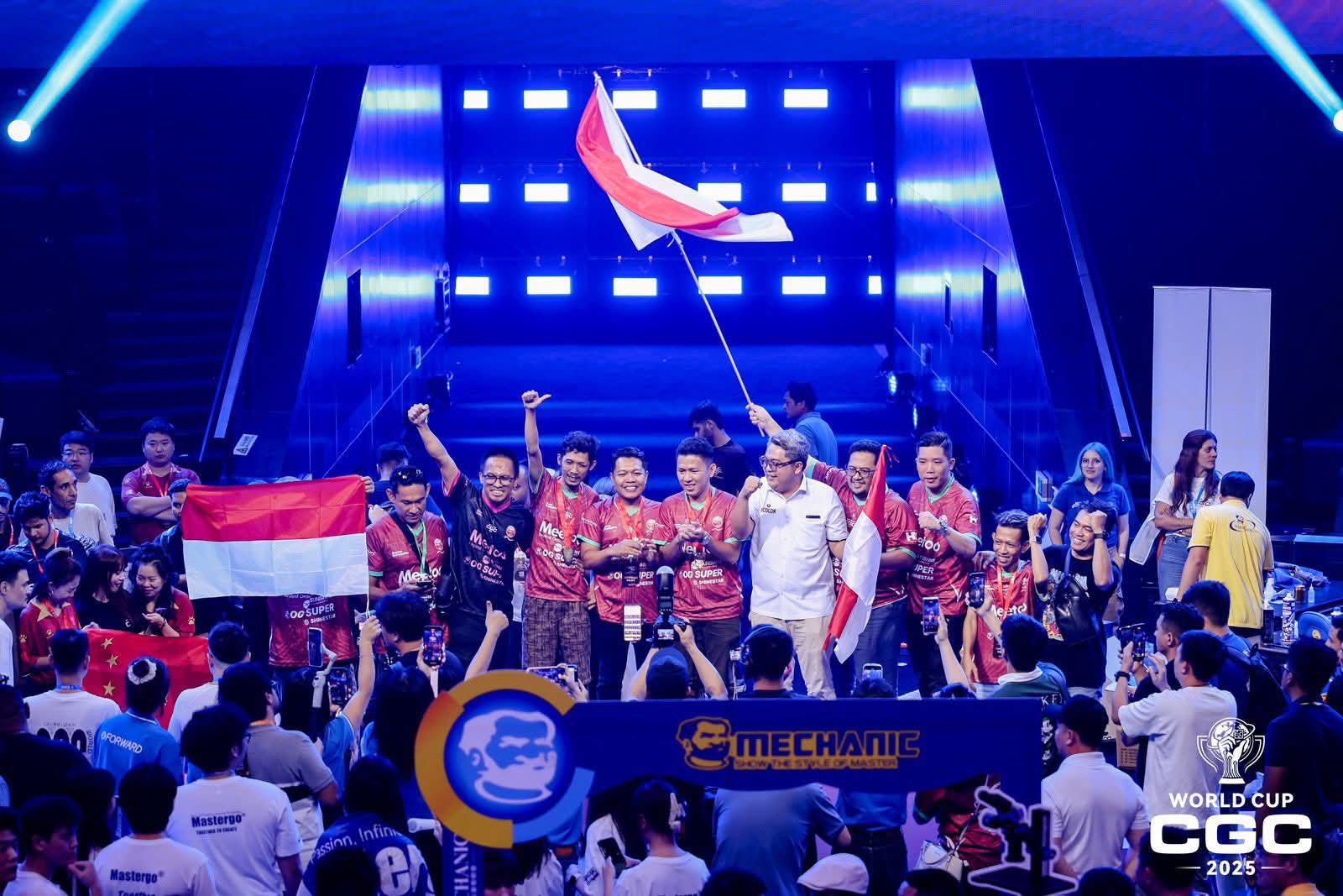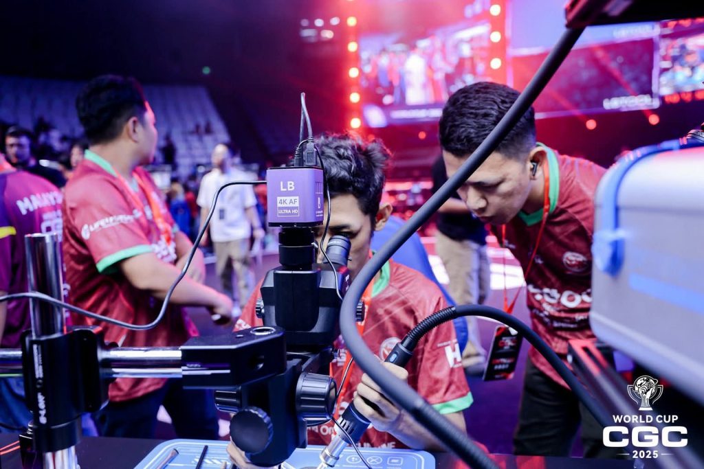 Tim Indonesia meraih juara 1 kategori grup dalam ajang World Cup CGC (Circuit Global Championship) 2025 di Guanzhou, China, Minggu (21/9). World Cup CGC merupakan kejuaraan internasional reparasi CPU smartphone yang diikuti oleh teknisi terbaik seluruh dunia